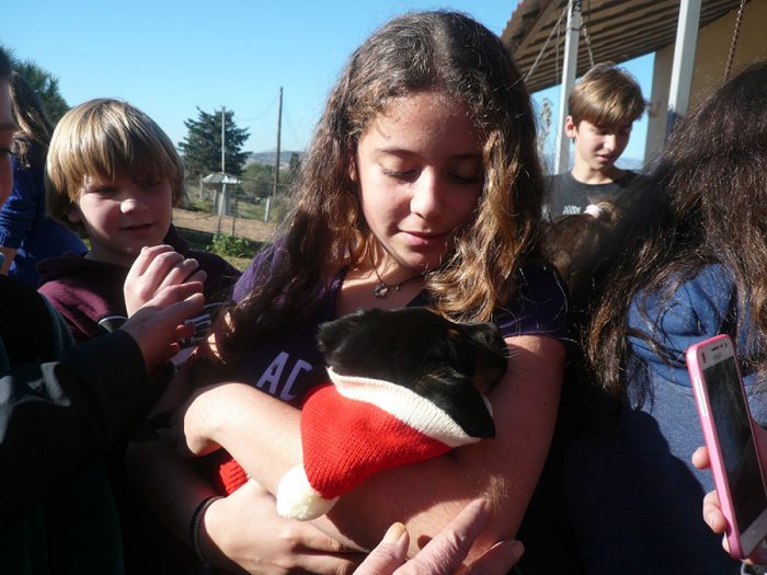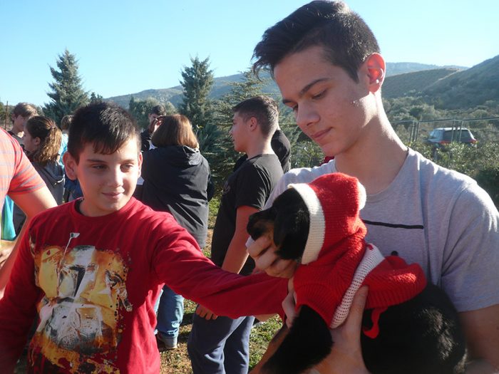Εκεί η υποδοχή που μας επιφύλαξαν ήταν θερμή. Μετά από μια σύντομη ενημέρωση για το έργο του Καταφυγίου και τον τρόπο λειτουργίας του, ακολούθησε αυτό που μικροί και μεγάλοι περίμεναν με ανυπομονησία… τα παιχνίδια με τα σκυλάκια! Πίσω από καθένα κρυβόταν μια ιστορία εγκατάλειψης, ασυνειδησίας και σκληρότητας. Έχουν δίκιο όσοι πιστεύουν ότι το επίπεδο πολιτισμού μιας χώρας αποτυπώνεται στον τρόπο αντιμετώπισης των ζώων. Πολλά από τα σκυλάκια που φιλοξενούνταν στο χώρο αυτό δεν ήταν παρά χριστουγεννιάτικα δώρα, που «εκδιώχθηκαν», όταν έπαψαν να είναι μικρά και χαριτωμένα. Ευτυχώς, χάρη στα φιλοζωικά αισθήματα κάποιων ανθρώπων, είχαν βρει ξανά τροφή και στέγη. Και τώρα βρίσκονταν στις αγκαλιές των μαθητών μας, οι οποίοι φαίνεται να απολάμβαναν και με το παραπάνω την επαφή με τα ζώα αυτά που η ζωή τούς είχε δείξει τη σκληρότητά της. Οι άνθρωποι του Καταφυγίου, μάλιστα, είχαν φροντίσει να ντύσουν μερικά από τα κουταβάκια με στολές Άγιου Βασίλη, δίνοντας γιορτινή νότα στην όλη συνάντηση…