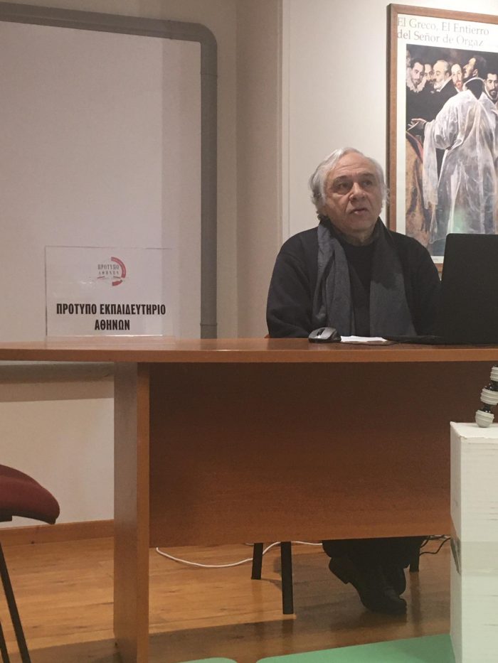 Στη συνέχεια, τη σκυτάλη έλαβε ο Δρ Παπαϊωάννου Τάσης, Καθηγητής Αρχιτεκτονικής ΕΜΠ, ο οποίος γοήτευσε το ακροατήριο με την κατάρτισή του και τον δομημένο του λόγο. Ο κ. Παπαϊωάννου αναφέρθηκε στο έργο του Πολιτικού Μηχανικού που είναι ο υπολογισμός των μελετών για την κατασκευή ενός έργου, των Συγκοινωνιολόγων, που μελετούν τη ροή της κυκλοφορίας και των Τοπογράφων, που ασχολούνται με την καταγραφή και αποτύπωση ενός τόπου ή τοπίου. Στη συνέχεια, αναφέρθηκε στο έργο άλλων Μηχανικών, όπως των Ηλεκτρολόγων και απάντησε με προθυμία σε ερωτήσεις μαθητών αναφορικά με τη φύση του αντικειμένου τους. Δεν μπορούσε, φυσικά, να μην αναφερθεί στην Αρχιτεκτονική, την επιστήμη που διακονεί, ορίζοντάς την ως τον σχεδιασμό, τη σύνθεση και τη δημιουργία χώρων ζωής. Στο σημείο αυτό, ο ομιλητής χρησιμοποίησε τα λόγια του Oscar Wild : «Αν η φύση ήταν άνετη, τότε ο άνθρωπος δε θα είχε εφεύρει την αρχιτεκτονική». Τα κτίσματα που δημιουργεί ο Αρχιτέκτονας, ο οποίος προσπαθεί να «αφουγκραστεί» τις ανάγκες ενός κτίσματος που δεν υπάρχει, δεν είναι παρά «δοχεία ζωής». Υπ’ αυτή την έννοια, η Αρχιτεκτονική είναι μια τέχνη- επιστήμη εξυπηρετική, καθώς συμβάλλει στο όραμα του ατόμου για μια καλύτερη ζωή. Ο αρχιτεκτονικός χώρος είναι ο τόπος όπου ζούμε, γεννιόμαστε, πεθαίνουμε. Σε σχέση με την αρχιτεκτονική σύνθεση, αυτή έγκειται στον σχεδιασμό με αφορμή ένα συγκεκριμένο θέμα (κατοικία, σχολείο) και την εκμάθηση μεθόδων προσέγγισης αυτού του θέματος. Προς την κατεύθυνση αυτή, σημαντική είναι η βιβλιογραφία, η γνώση της ιστορίας των διαφόρων υλικών αλλά και, πλέον, ο βιοκλιματικός σχεδιασμός. Αν και, σήμερα, τα σχέδια γίνονται σε υπολογιστή, στη σχολή, κατά τα πρώτα εξάμηνα φοίτησης, οι φοιτητές καλούνται να σχεδιάσουν στο χέρι, για να συνειδητοποιήσουν τι σχεδιάζουν. Κλείνοντας, προέτρεψε τα παιδιά να κάνουν επιλογή επαγγέλματος με «κλειδί» την αγάπη και το πάθος. Μόνο έτσι, θα καταφέρουν να κάνουν το επάγγελμά τους με χαρά και να διαπρέψουν σε αυτό, αφήνοντας τη σφραγίδα τους.