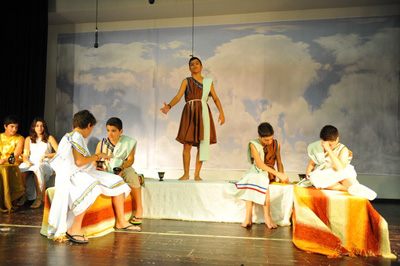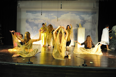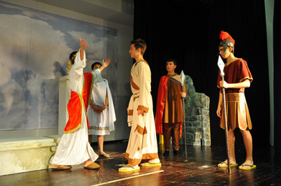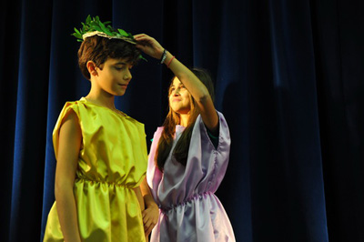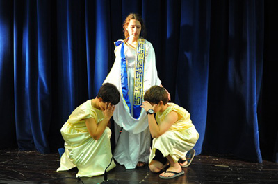 Το Σάββατο 14 Δεκεμβρίου 2013 πραγματοποιήθηκε η χριστουγεννιάτικη παράσταση του σχολείου μας στο Αμφιθέατρο Δημαρχείου Κορωπίου. Το θεατρικό δρώμενο, που είχε ως τίτλο «Ιδιοφυία και κοινωνία», ανέβηκε χάρη στη συμμετοχή όλων των μαθητών του γυμνασίου μας, οι οποίοι απέδειξαν ότι τα δύσκολα έργα δεν είναι παρά μια ευκαρία για ν’ αποκαλύψουν πτυχές του χαρακτήρα τους που αναζητούσαν ευκαιρίες έκφρασης. Οι μαθητές στηρίχτηκαν σε κείμενα του Ξενοφώντα, του Πλάτωνα, του Σενέκα και του Μπρέχτ καθώς και σε ποιήματα του Καβάφη, τα οποία, αφού μελέτησαν, τα δραματοποίησαν με σοβαρότητα σύμμεικτη με ένα αίσθημα ευθύνης απέναντι στους μεγάλους δημιουργούς.