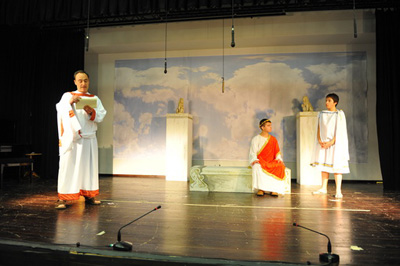 Η δεύτερη πράξη, η οποία παρουσιάστηκε από τους μαθητές του Γ’1 γυμνασίου, περιγράφει την τελευταία συνάντηση του Νέρωνα με το δάσκαλό του, φιλόσοφο Σενέκα, κατά την οποία ο αυτοκράτορας τον στέλνει σε θάνατο.