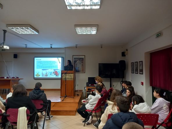 Το θέμα της ομιλίας της κ. Πιτυρίγκα ήταν : «Μέτρα προφύλαξης λοιμώξεων στα σχολεία», ένα θέμα επίκαιρο, καθώς, παρατηρείται έξαρση των ιώσεων τους χειμερινούς, ιδίως, μήνες. Ξεκινώντας την πολύ ενδιαφέρουσα παρουσίασή της, η κ. Πιτυρίγκα υπογράμμισε ότι οι ιώσεις, το κρυολόγημα και άλλες λοιμώξεις του αναπνευστικού μάς ταλαιπωρούν, ιδιαίτερα τους χειμερινούς μήνες, όσο προσεκτικοί κι αν είμαστε. Για τον λόγο αυτό, κρίνεται απαραίτητο να μάθουμε να προφυλασσόμαστε και να αντιμετωπίζουμε αυτόν τον «απρόσκλητο επισκέπτη». Στη συνέχεια, έκανε λόγο για τις διαφορές μεταξύ ενός κοινού κρυολογήματος και της γρίπης, με βάση τη συμπτωματολογία καθενός, ώστε και οι ίδιοι οι μαθητές να είναι σε θέση να τα διαχωρίζουν. Δεν παρέλειψε να επισημάνει τη σημασία της υγιεινής των χεριών ως μέτρου προφύλαξης κατά των λοιμώξεων στα σχολεία, προτρέποντας, παράλληλα, τους μαθητές να πλένουν, με τον σωστό τρόπο, τα χέρια τους. Ακόμα, αναφέρθηκε στη σπουδαιότητα του εμβολιασμού και εξήγησε, με τρόπο απλό και κατανοητό, στα παιδιά την έννοια της- γνωστής σε όλους μας- «ανοσίας». Εξήγησε, τέλος, τους λόγους για τους οποίους οι ηλικιωμένοι δεν αρρωσταίνουν τόσο συχνά από ιώσεις και απάντησε στο ερώτημα γιατί εκείνοι ήταν πιο ευάλωτοι απέναντι στον Covid-19.