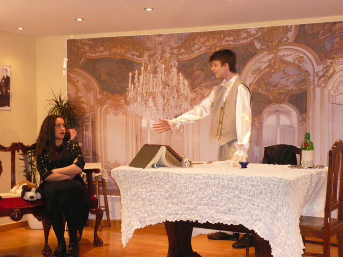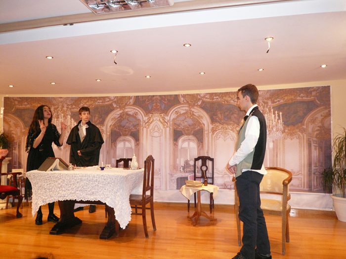 Την Παρασκευή, 1 Απριλίου 2016 στο Σχολείο μας ξεκίνησαν οι θεατρικές παραστάσεις του φετινού σχολικού θεατρικού φεστιβάλ. Συνολικά 5 θεατρικές ομάδες θα παρουσιάσουν τη δουλειά τους. Η πρώτη μικρή ομάδα της Γ’ Γυμνασίου έδειξε στους μαθητές όλου του σχολείου το μονόπρακτο του Άντον Τσέχωβ με τίτλο “Η Αρκούδα”.