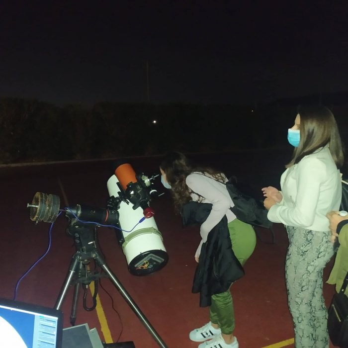 Μετά το πέρας της ομιλίας του κ. Γαζέα, οι παρευρισκόμενοι μαθητές και φίλοι του σχολείου είχαν τη μοναδική ευκαιρία να παρατηρήσουν την Αφροδίτη και Σελήνη με τη βοήθεια τηλεσκοπίων που προσέφερε στο σχολείο μας η Αστρονομική Ένωση Σπάρτης «Διόσκουροι». Μάλιστα, η μειωμένη φωτορύπανση της περιοχής λειτούργησε ως άριστη συνθήκη για τη βραδινή παρατήρηση. Μέσα σε λίγα λεπτά, είχαν δημιουργηθεί δύο μεγάλες σειρές από μικρά και… μεγαλύτερα παιδιά, που ήθελαν να θεαθούν τη Σελήνη και την Αφροδίτη. Οι κ.κ. Νίκος Τρεμούλης και Αντώνης Φαρμακόπουλος, ερασιτέχνες αστρονόμοι με μεγάλη αγάπη για την εν λόγω επιστήμη, καθοδηγούσαν τους μαθητές, ώστε να παρατηρήσουν, με τη βοήθεια τηλεσκοπίων, τους κρατήρες στην επιφάνεια της Σελήνης και να θαυμάσουν τον πιο λαμπερό πλανήτη του ηλιακού μας συστήματος, την Αφροδίτη.